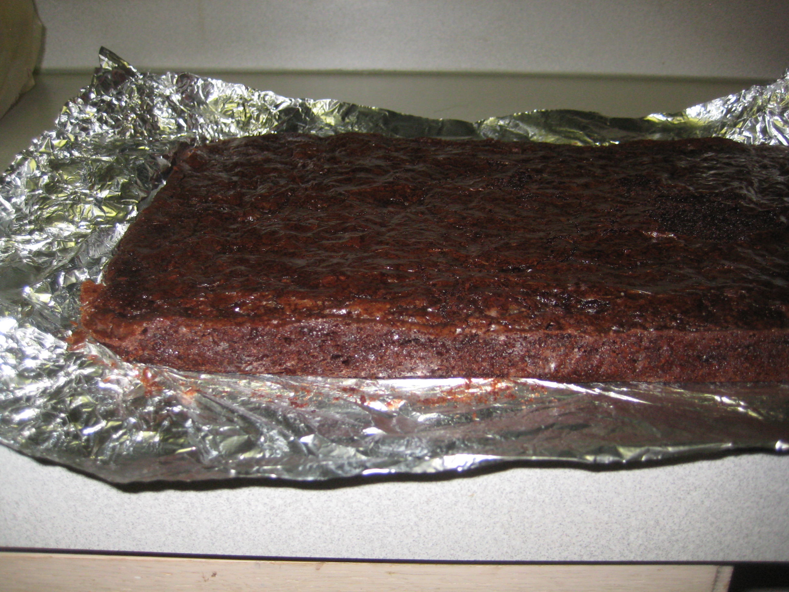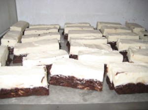 The brownie part was easy – I just baked a thin batch of brownies in a 9×13 pan. I think it was about an inch thick.