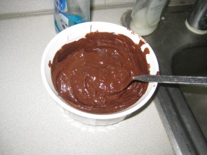 Massive fail. The chocolate, cool as it was, instantly melted the ice cream, which in turn, made the chocolate curdle. Or something. But whatever happened, it was bad.