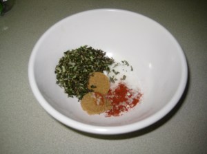 Combine the rosemary, pepper, sugar, and salt in a small bowl.