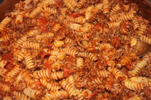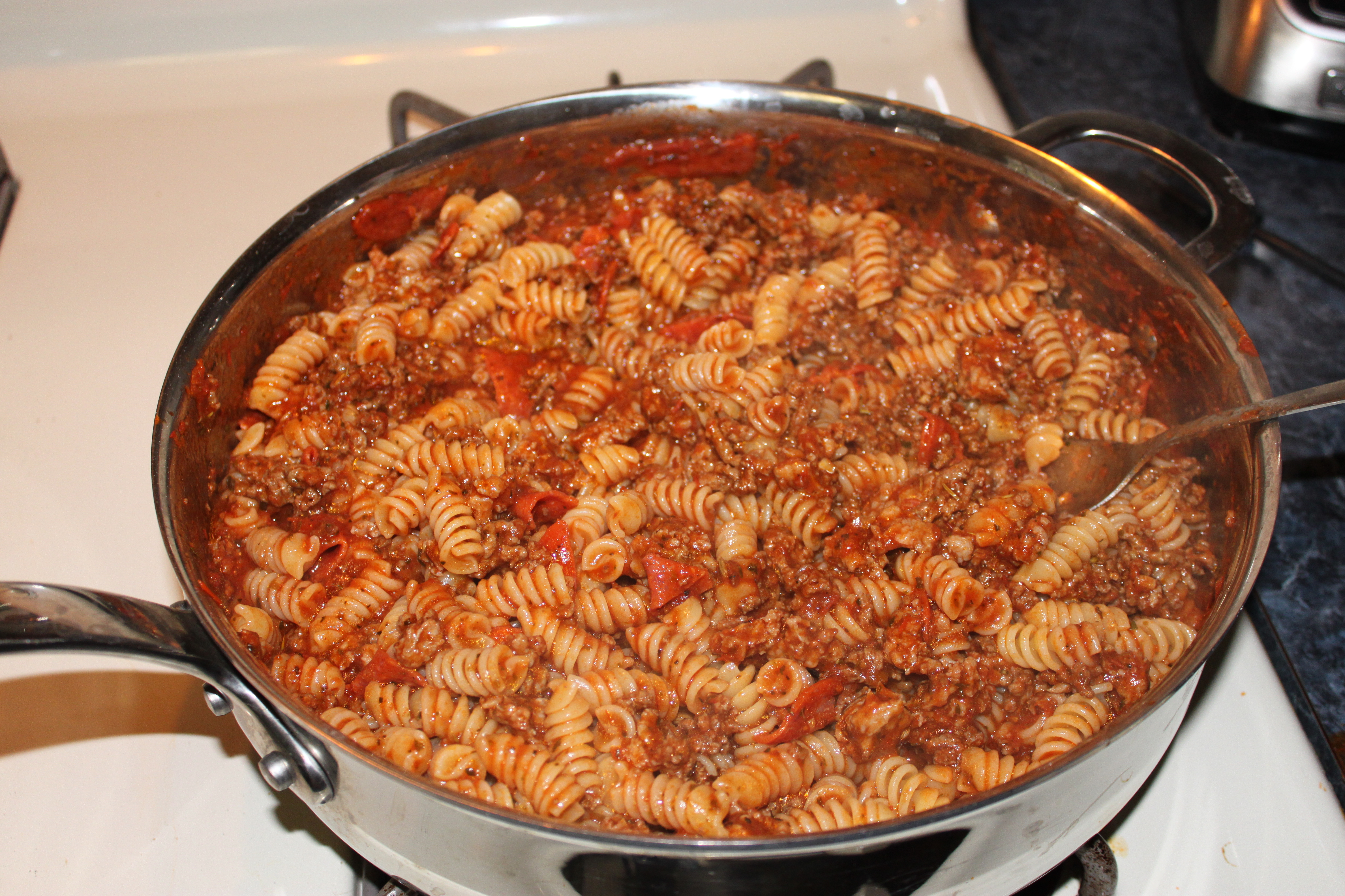 By the way, if you are wondering what that strange utensil is in the pan, it is the Pampered Chef Mix N Chop – it’s amazing for cooking ground beef and sausage!!