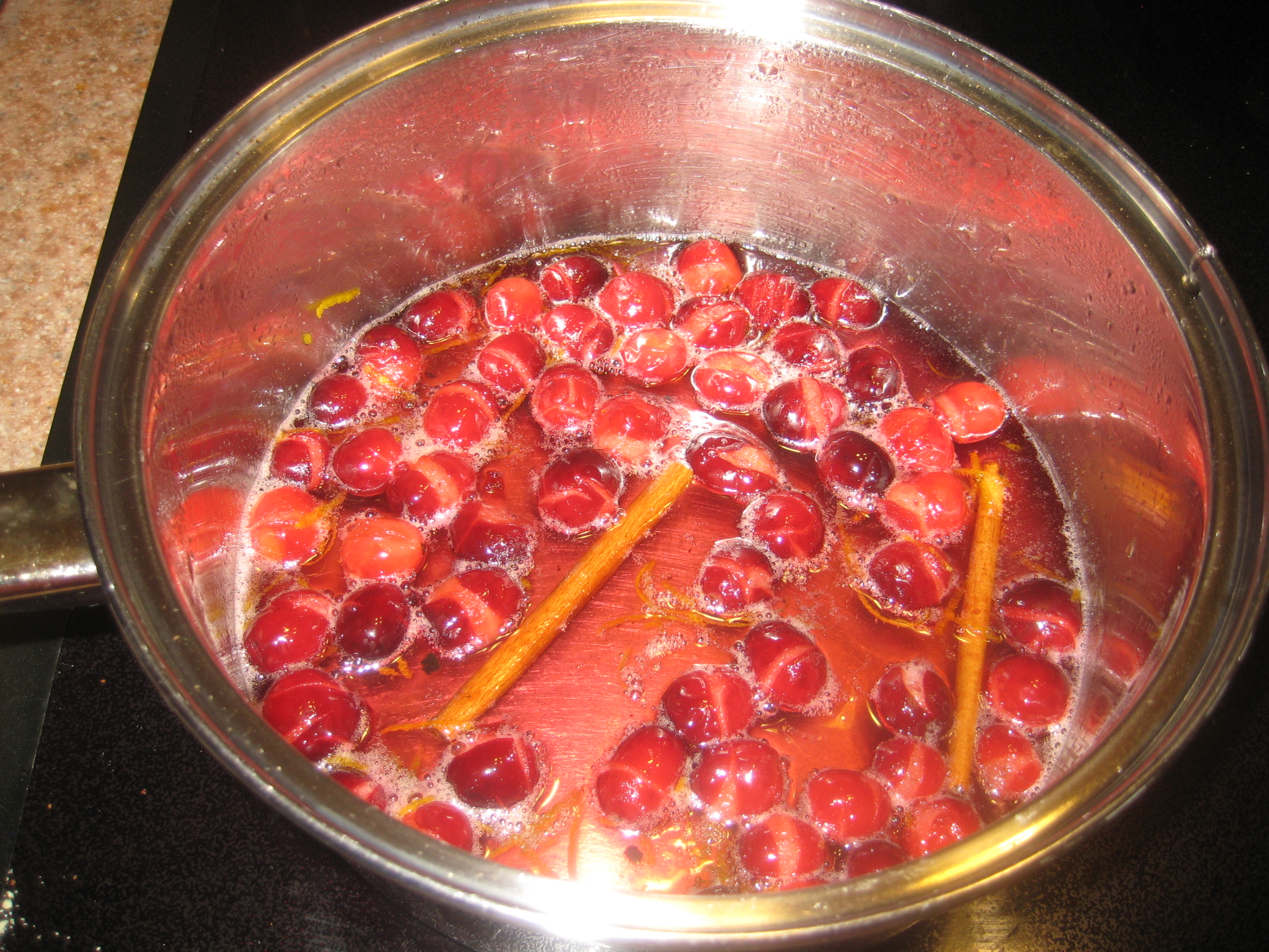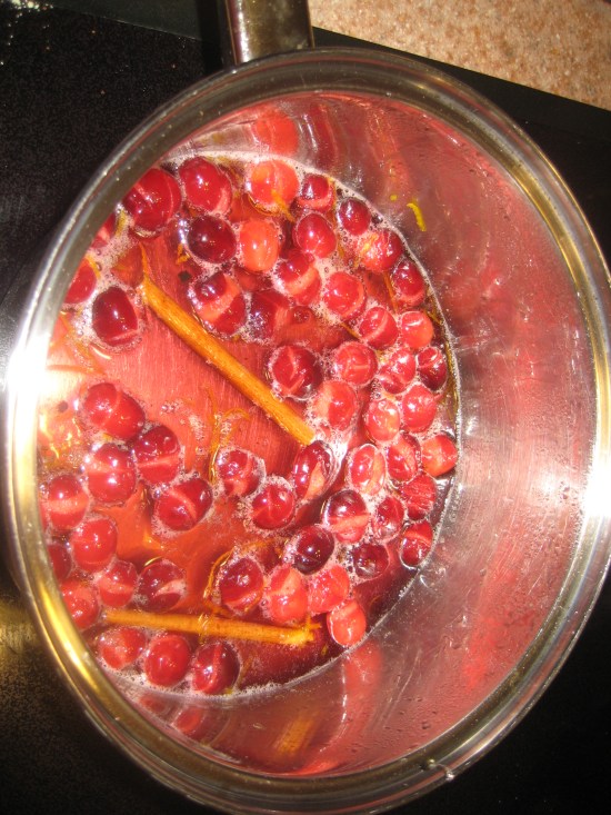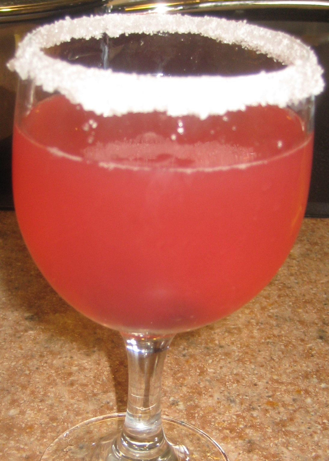 November 28, 2010 at 5:01 pm | Posted in Uncategorized | 2 CommentsLauren gave me this recipe, and it is a really nice holiday drink (thanks Lauren!). It’s a unique change from the standard holiday drink fare. I made a double batch in the pictures below. They were really yummy, and the house smelled delicious from the boiling cinnamon sticks! These would have more of a daiquiri feel if served over crushed ice – and obviously, the glass at the bottom is probably a double serving!! I also think adding ice would help the cranberries float on top, rather than sinking to the bottom as they did in my version.