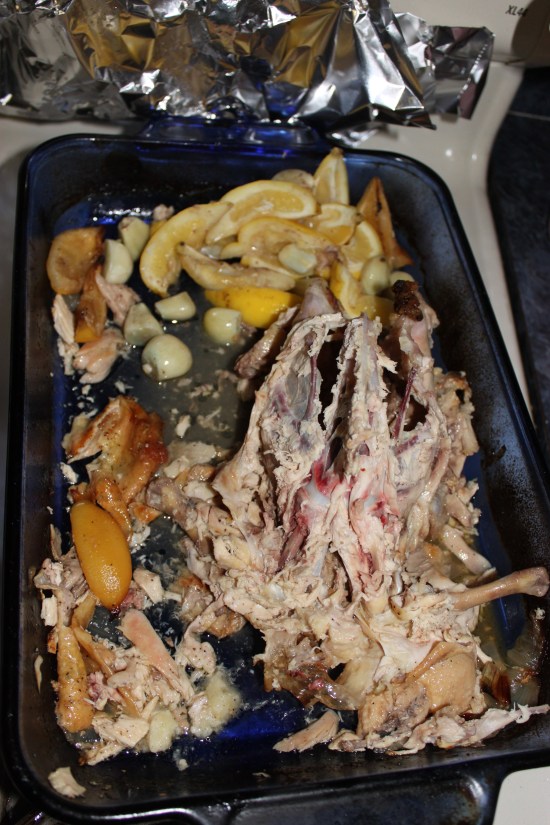 Carve the chicken onto a platter and serve with the lemons, onions, and warm sauce.