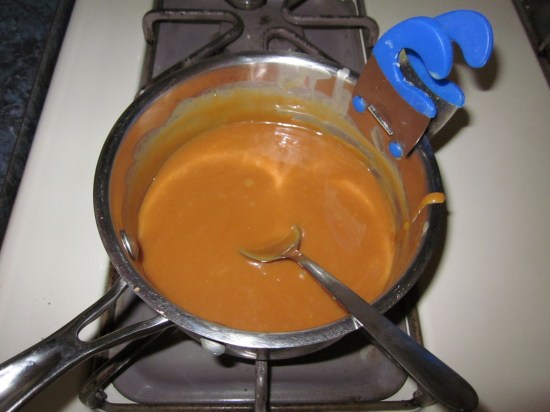 2. In a medium saucepan over low heat, melt together the caramels and heavy cream, stirring occasionally until smooth.