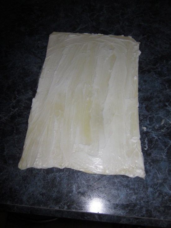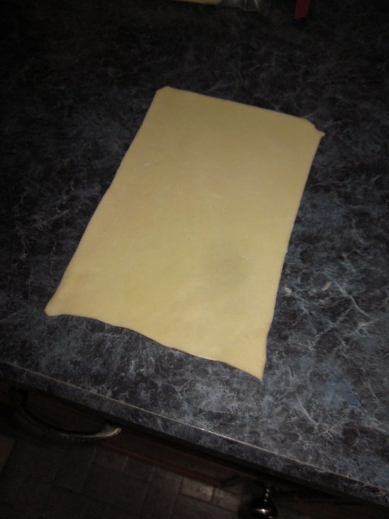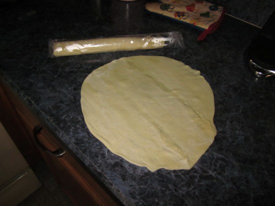 Cut your pie dough into a rectangle. (You can use the excess pie dough to make another log of dough if you like.)