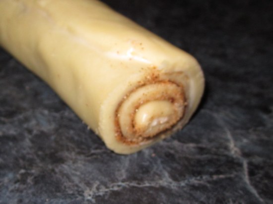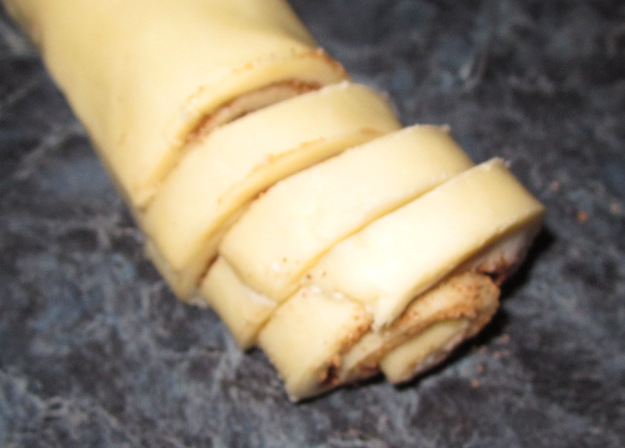 Once your log is rolled, slice the dough into quarter inch thick slices.