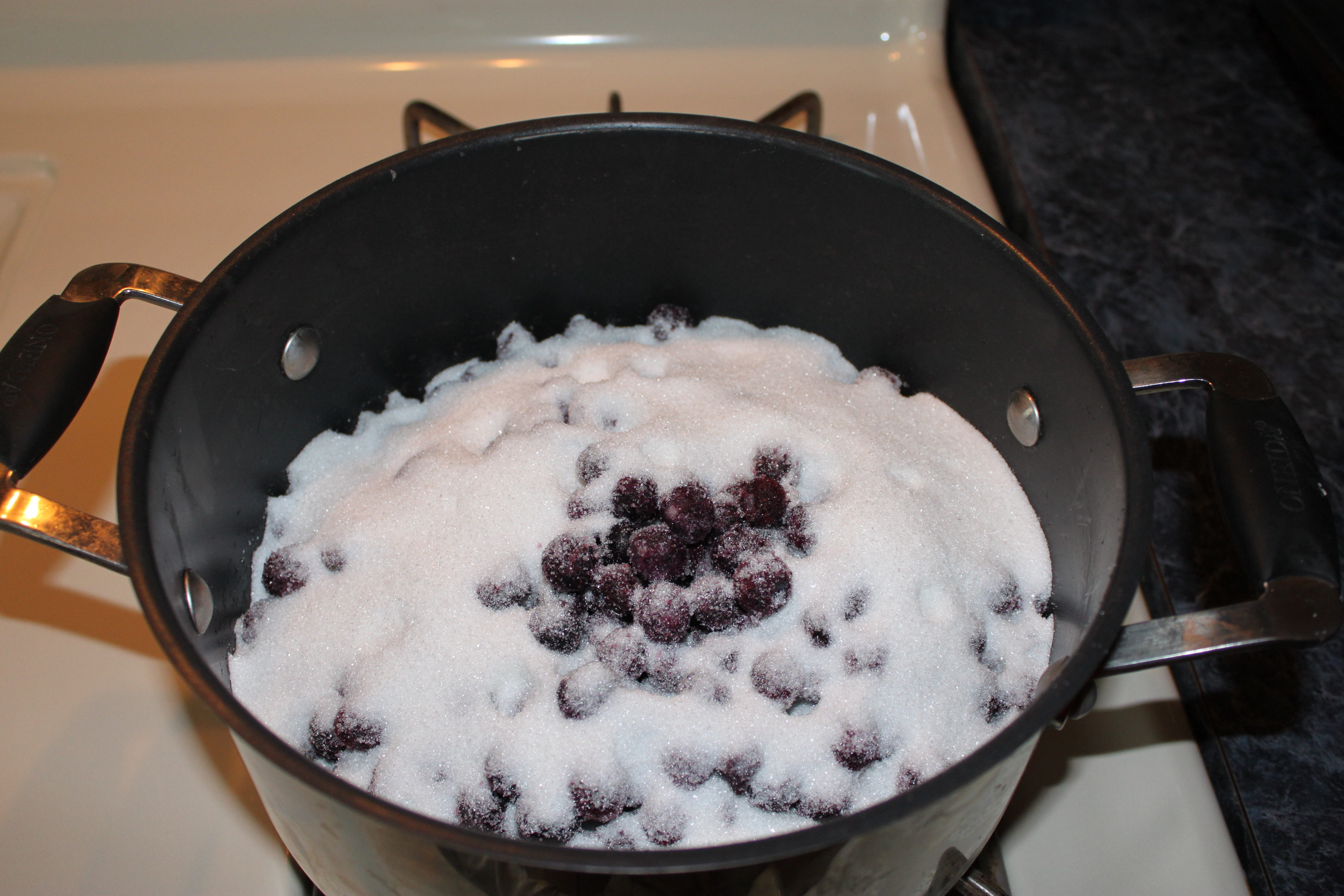1. In a large saucepan, combine the blueberries, sugar and water; bring to a boil.