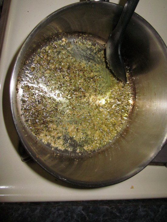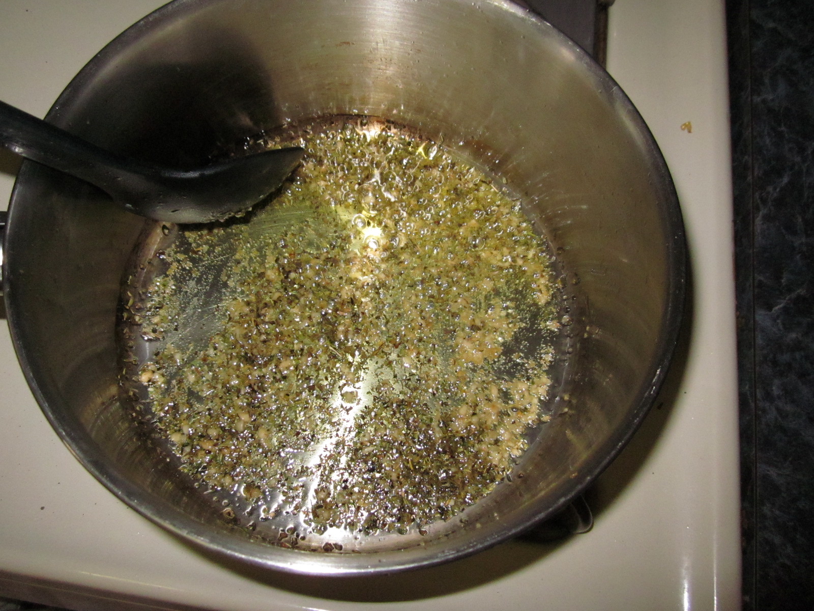 In a saucepan, heat oil over medium heat. Add garlic and italian seasoning and cook until garlic is fragrant, about 30 seconds.