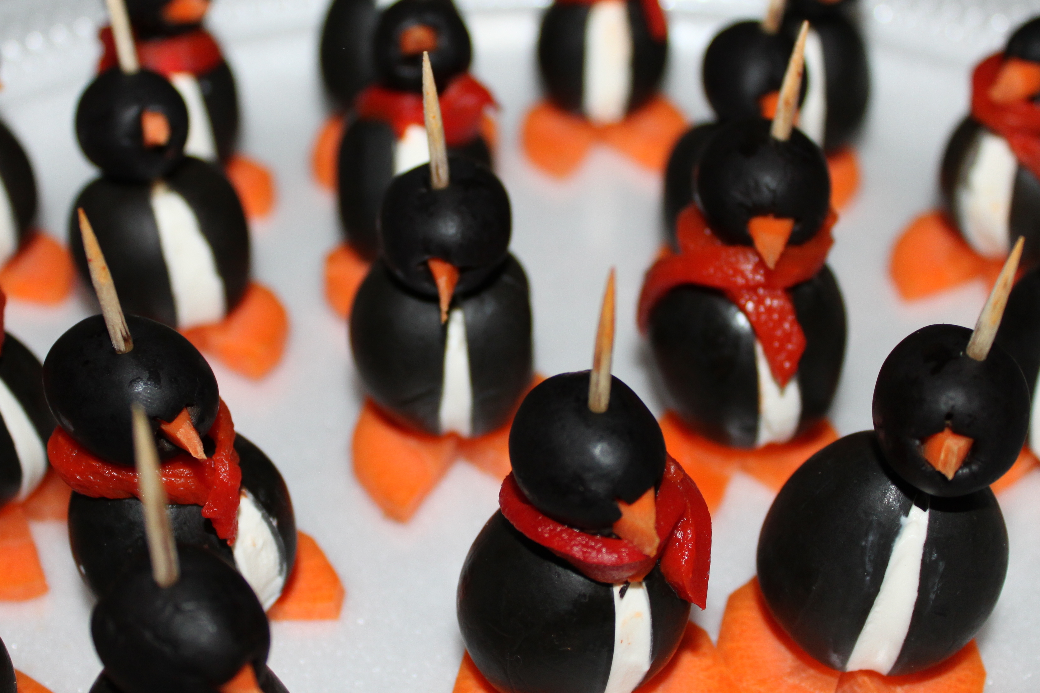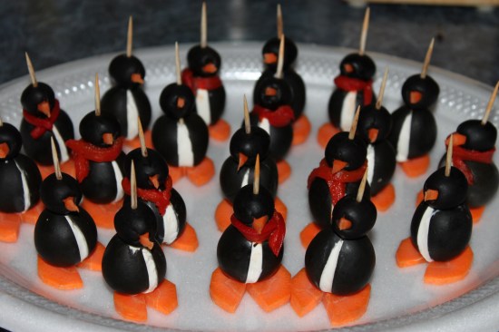 I made these back in December when the weather was a bit cooler, and they are still one of the cutest holiday party appetizers I have ever seen. And they require a little patience but less skill to assemble!
