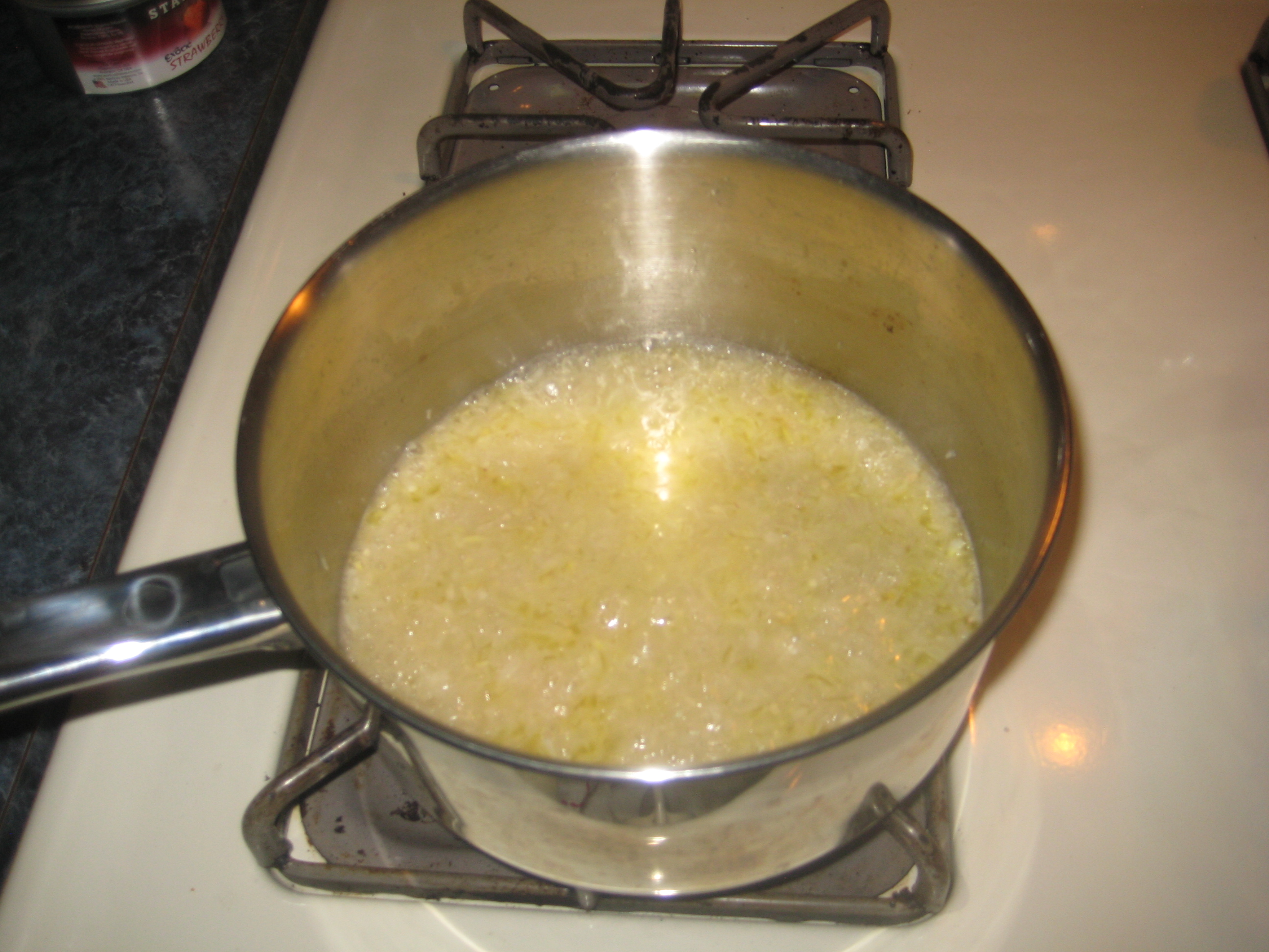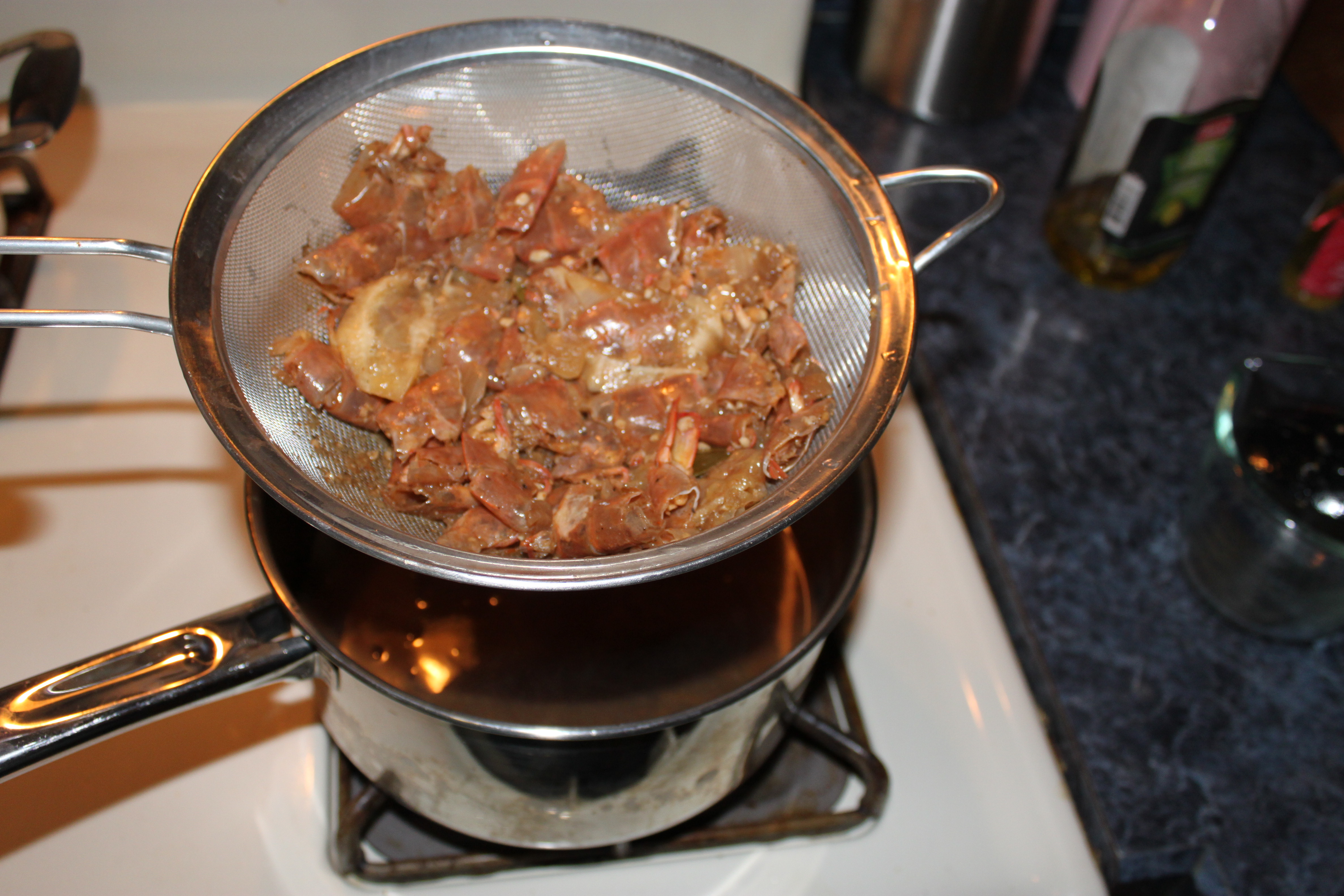 Remove from the heat, allow to cool for about 15 minutes. Strainnto a small saucepan. There should be about 1 1/2 cups.