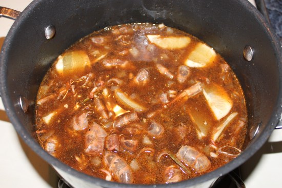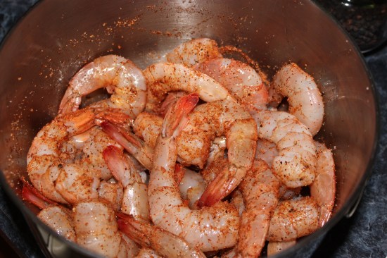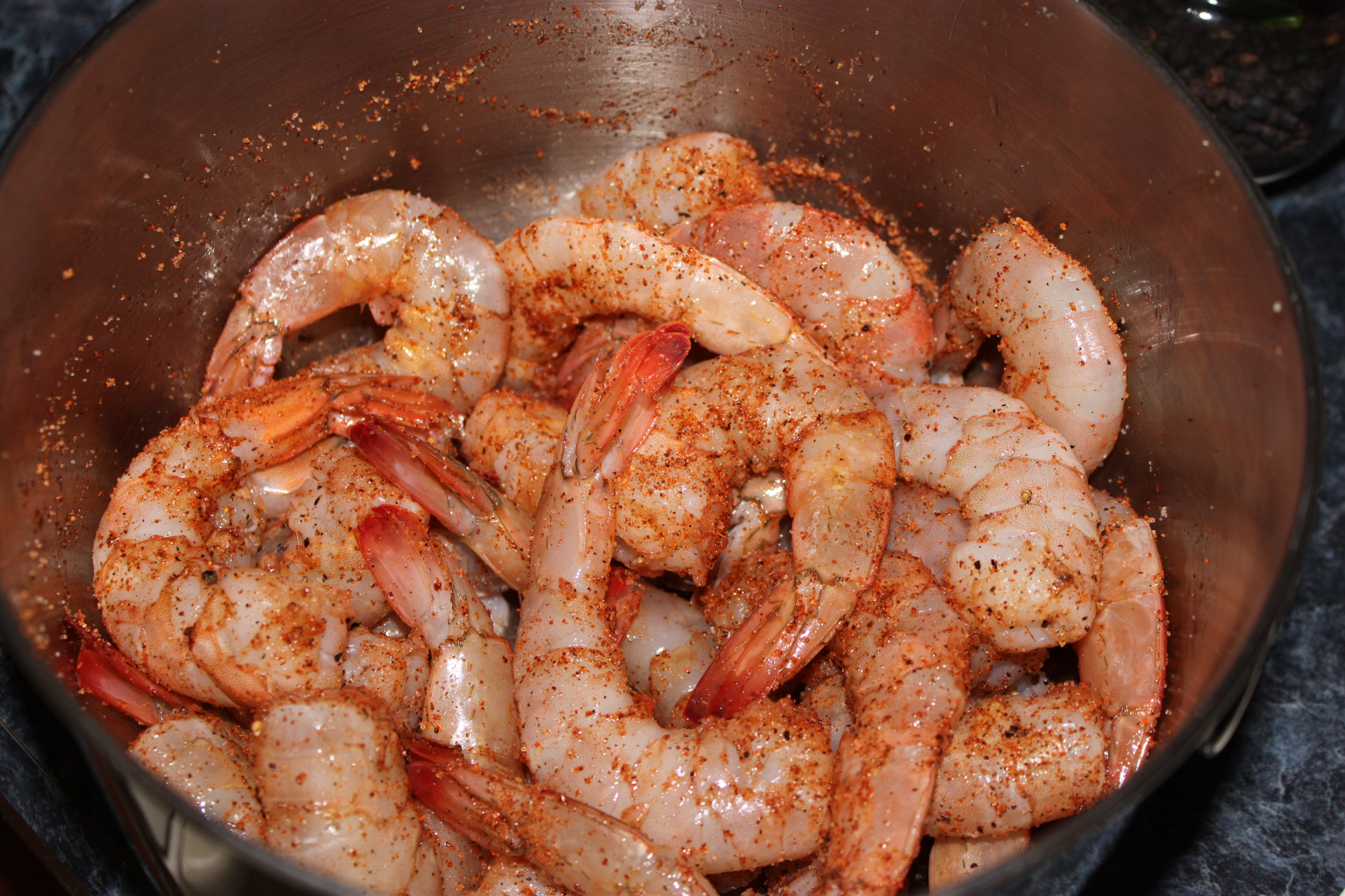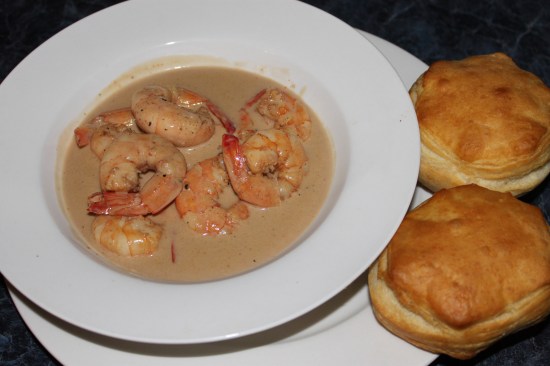So I read a recipe for Emeril’s BBQ shrimp and this is a slightly modified version of that recipe – and it’s delicious! It would be nice to serve this to company.