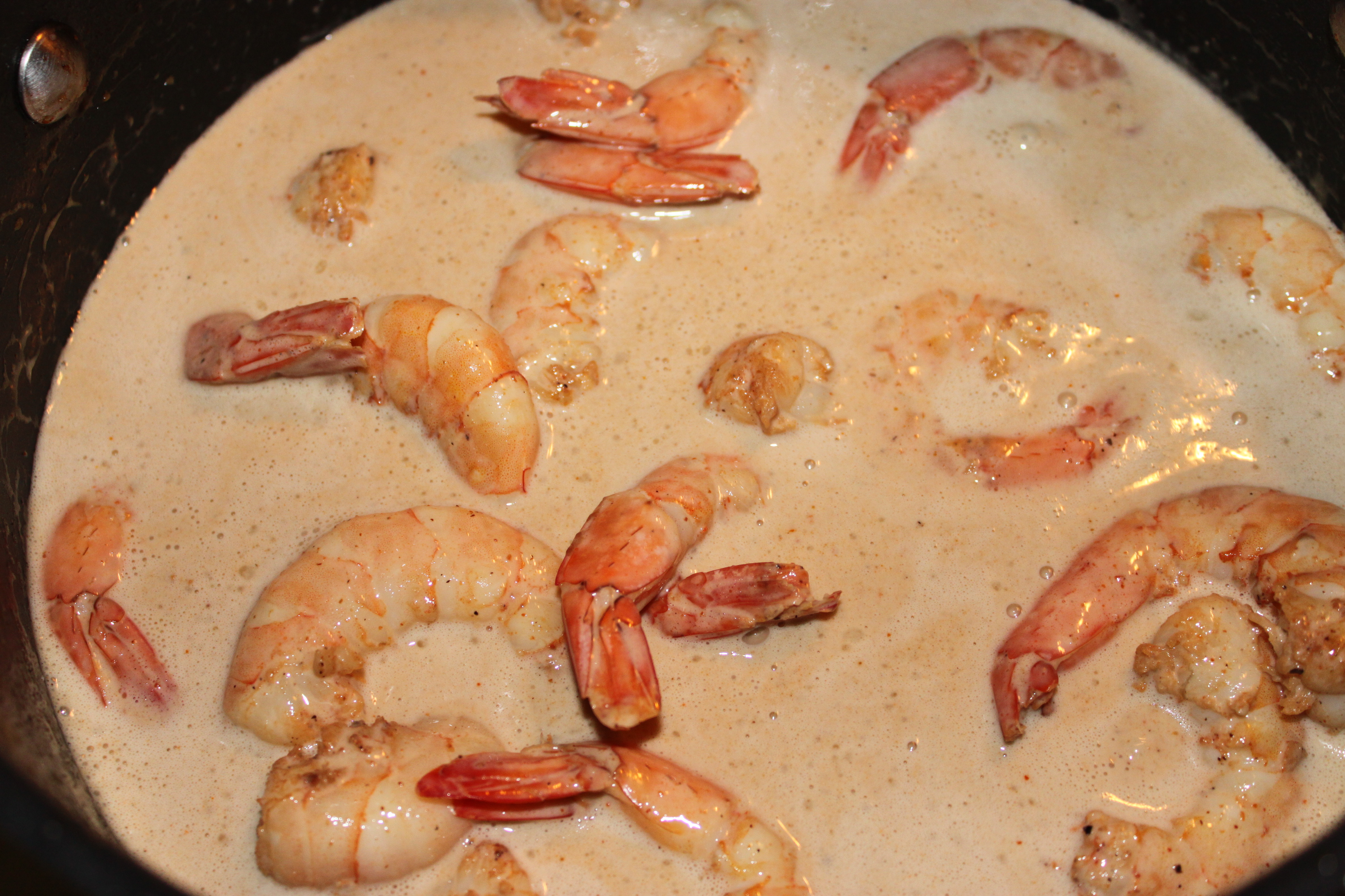Peel the shrimp, leaving only their tails attached. Reserve the shells and set aside. Sprinkle the shrimp with 1 tablespoon Creole seasoning and fresh cracked black pepper. Use you hands to coat the shrimp with the seasonings. Refrigerate the shrimp while you make the sauce base.