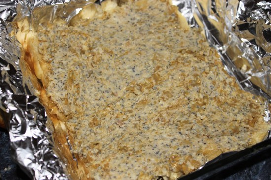 Preheat oven to 350 degrees. Mix together butter, poppy seeds, onion, Worcestershire sauce and prepared mustard.
