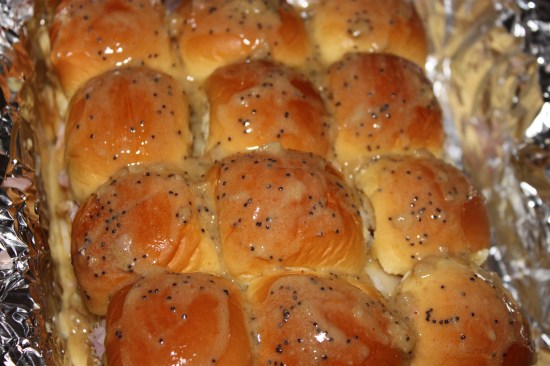 - 2 (12 ounce) packages white party rolls (I used potato rolls)