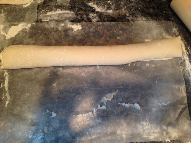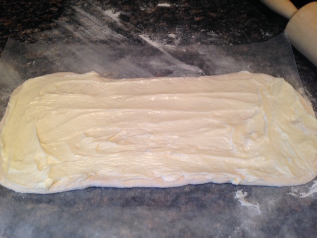 On a floured surface, roll your dough out to roughly an 8×16 rectangle.