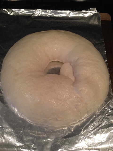 Lightly spray the dough ring with cooking spray, cover with plastic wrap, and let rise in a warm place for at least an hour, until your dough has roughly doubled.