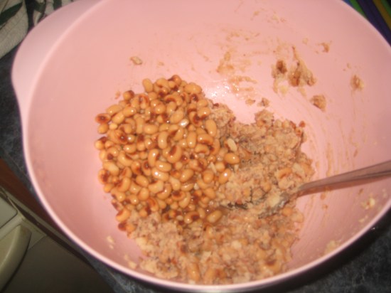 - 2 cans black-eyed peas, drained and mashed with a fork